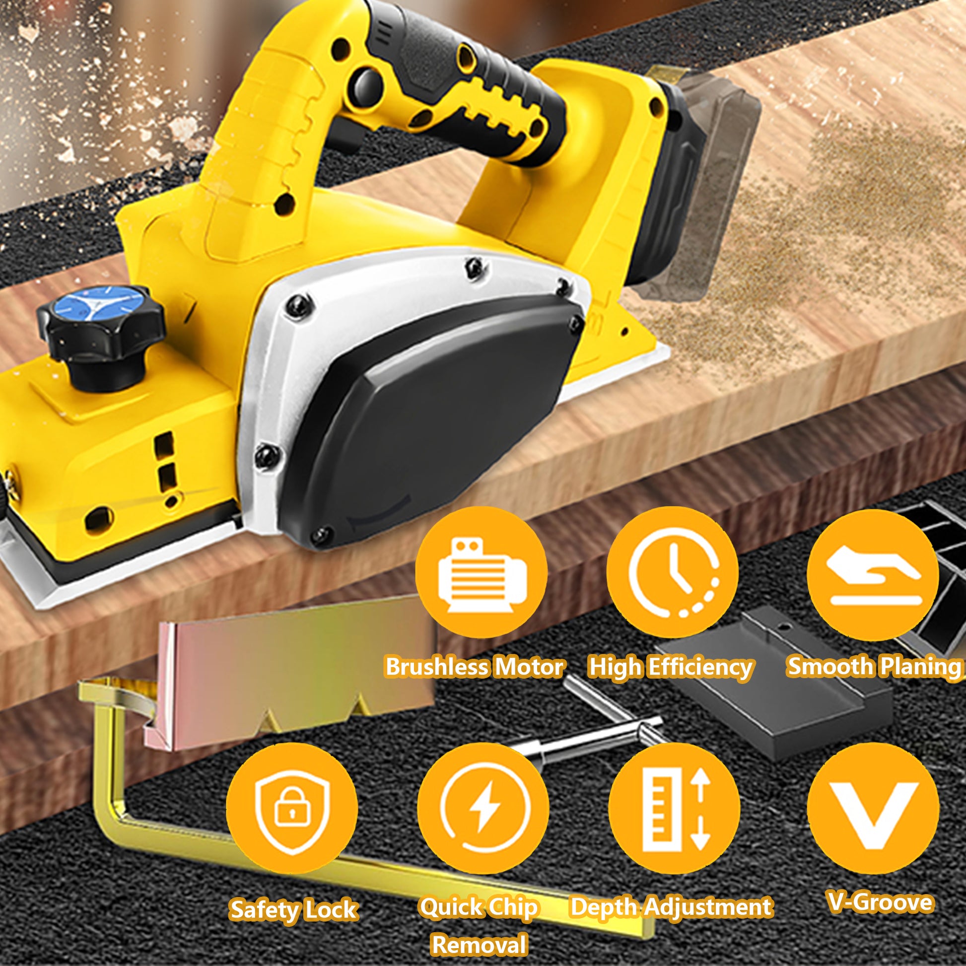 - 【Brushless High - Efficiency Planing】Equipped with a brushless motor, this electric wood planer can achieve a rotational speed of 15000 RPM. With a planing width of 3 - 1/4 inches (82mm), it effortlessly and efficiently processes materials, significantly reducing your work burden.