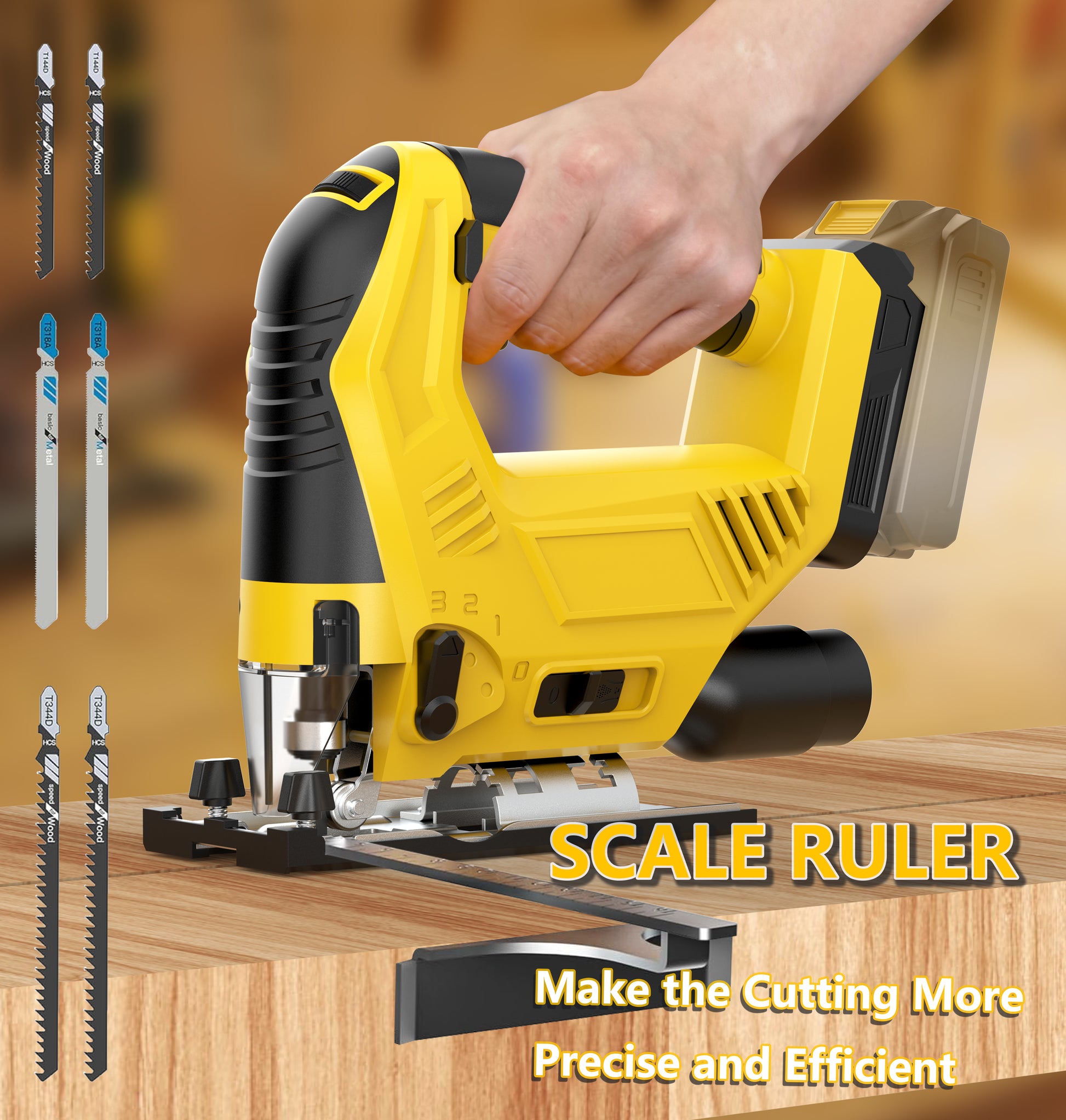 - 【Convenience & Safety - First Design】 Featuring a dust blower/vacuum attachment and an LED light, this cordless jigsaw ensures a debris - free and well - lit workspace for accurate cuts. The soft rubber non - slip handle provides a comfortable grip, while the lock - on button prevents accidental startups, prioritizing user safety during operation.