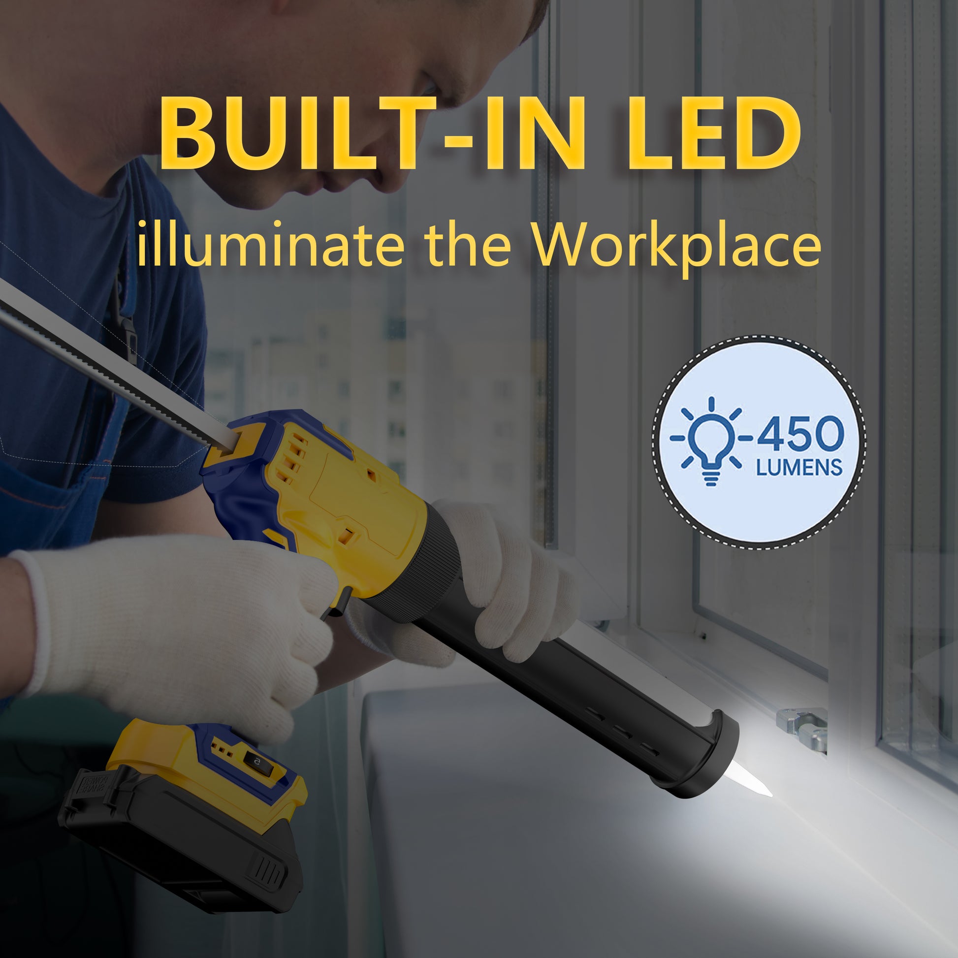 Cordless Electric Caulking Gun Compatible with DeWalt 20V Max Battery(NO BATTERY), 310ml/10oz Caulk tubes, LED Light, Auto Retract, 6 Speed Caulk Gun No Drip for Filling, Sealing, Repairing